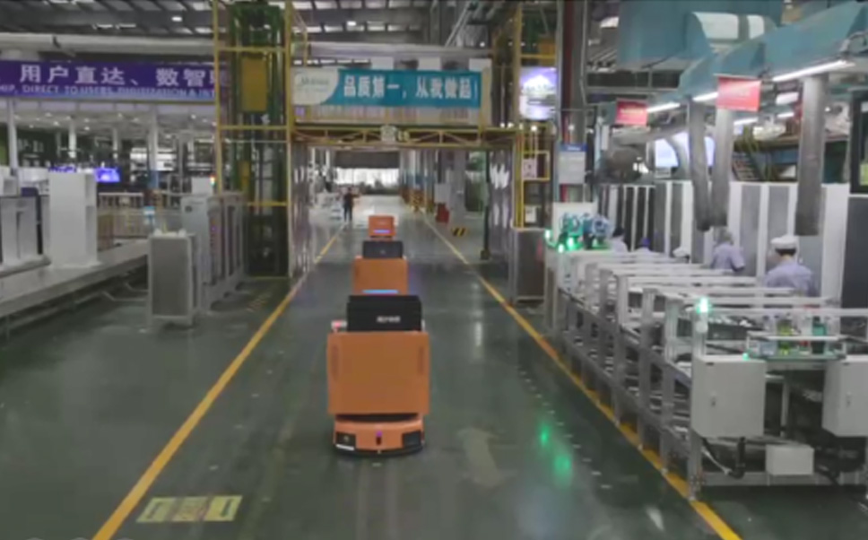 为车载冰箱物流配送打造的智能解决方案,,包含产中物流通过潜伏举升AMR搬运至线边,,,产后成品物流智能仓储,,,流程包含产中物流智能齐套入库,,,线边安灯叫料AMR智能配送至线边,,,成品入库、、出库,,,通过无人堆高车机器人,,,智能仓储管理替代人工作业管理,,,实现更高存储、、更高效率、、、、更具柔性化的解决方案。。。